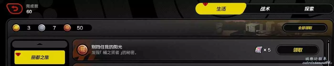 (2)然後去左前方和【桶之賢者】對完話後,再回來和【艾裡斯】對完話後,該任務結束,同時刻獲得隱藏成就《別擋住我的陽光》(生活-麗都之旅)