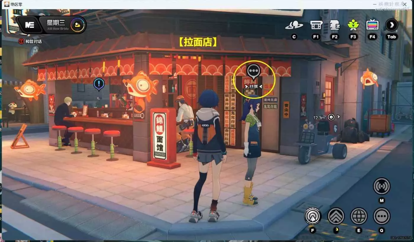 (1)上午時間段,點擊【拉麵店】傳送過去後,和【拉麵店】門口【絲琪】對完話後,即可獲得1個【調查協會紀念幣】,注意【絲琪】頭頂必須有3個灰色點,對話後才能獲取到紀念幣