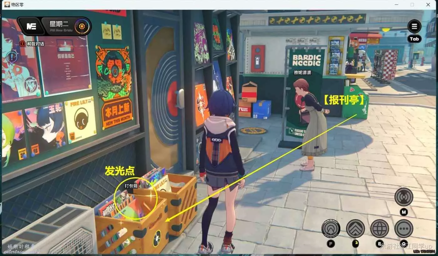 (1)下午時間段,點擊【報刊亭】傳送過去後,來到下圖位置調查【打包箱】後,即可獲得1個【調查協會紀念幣】,注意【打包箱】上必須有一閃一閃的發光點,調查後才會有紀念幣