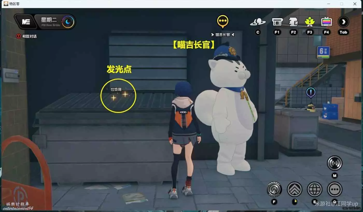 (1)夜晚時間段,點擊【喵吉長官】傳送過去後,調查左邊【垃圾箱】後,即可獲得1個【調查協會紀念幣】,注意【垃圾箱】上必須有一閃一閃的發光點,調查後才會有紀念幣