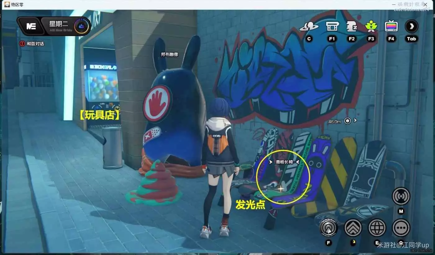(1)淩晨時間段,點擊【玩具店】傳送過去後,來到【玩具店】右邊調查【滑板長椅】後,即可獲得1個【調查協會紀念幣】,注意【滑板長椅】上必須有一閃一閃的發光點,調查後才會有紀念幣