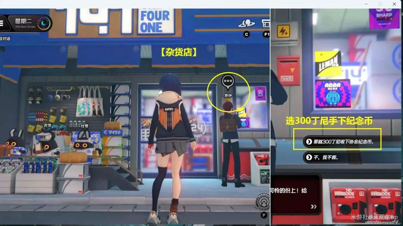 (1)夜晚時間段,點擊【電玩店】傳送過去後,和【電玩店】門口的【約拿】對完話後,即可獲得1個【調查協會紀念幣】,注意【約拿】頭頂必須有3個灰色點,對話後才能獲取到紀念幣