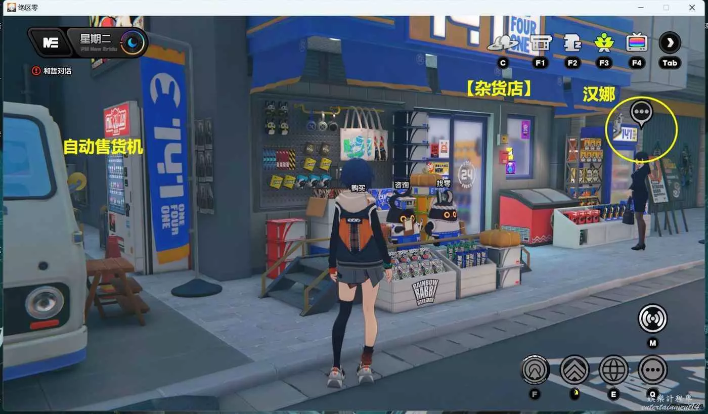 (1)夜晚時間段,點擊【雜貨店】傳送過去後,先和【雜貨店】門口的【漢娜】完成第1次對話,然後去調查一下左邊的【自動售貨機】後,再次回去和【漢娜】對完話後,即可獲得1個【調查協會紀念幣】,注意【漢娜】頭頂必須有3個灰色點,對話後才能獲取到紀念幣