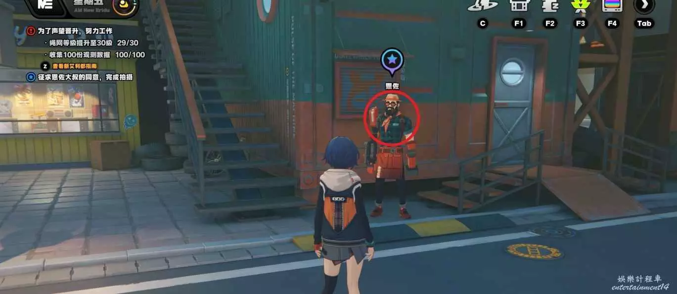 5,傳送到六分街—改裝店,與左手邊的恩佐對話,並拍攝他的機械臂