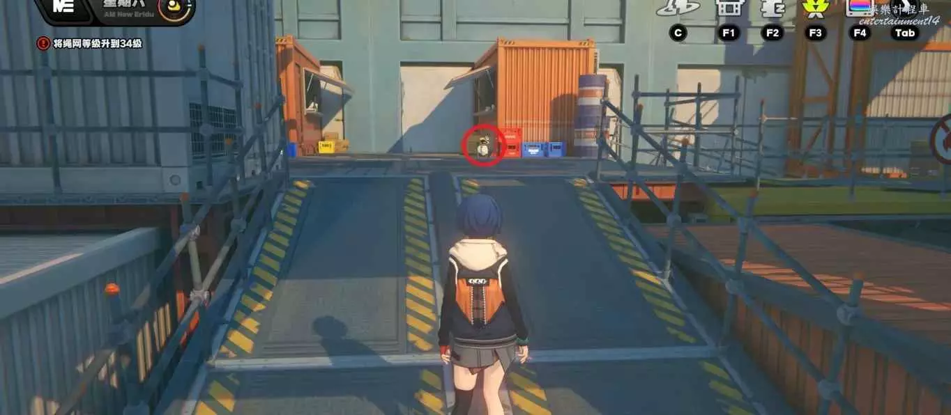 順著斜坡,來到二層的集裝箱平台,修理集裝箱旁的邦布即可