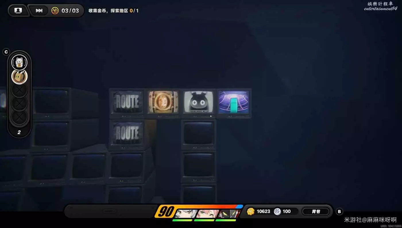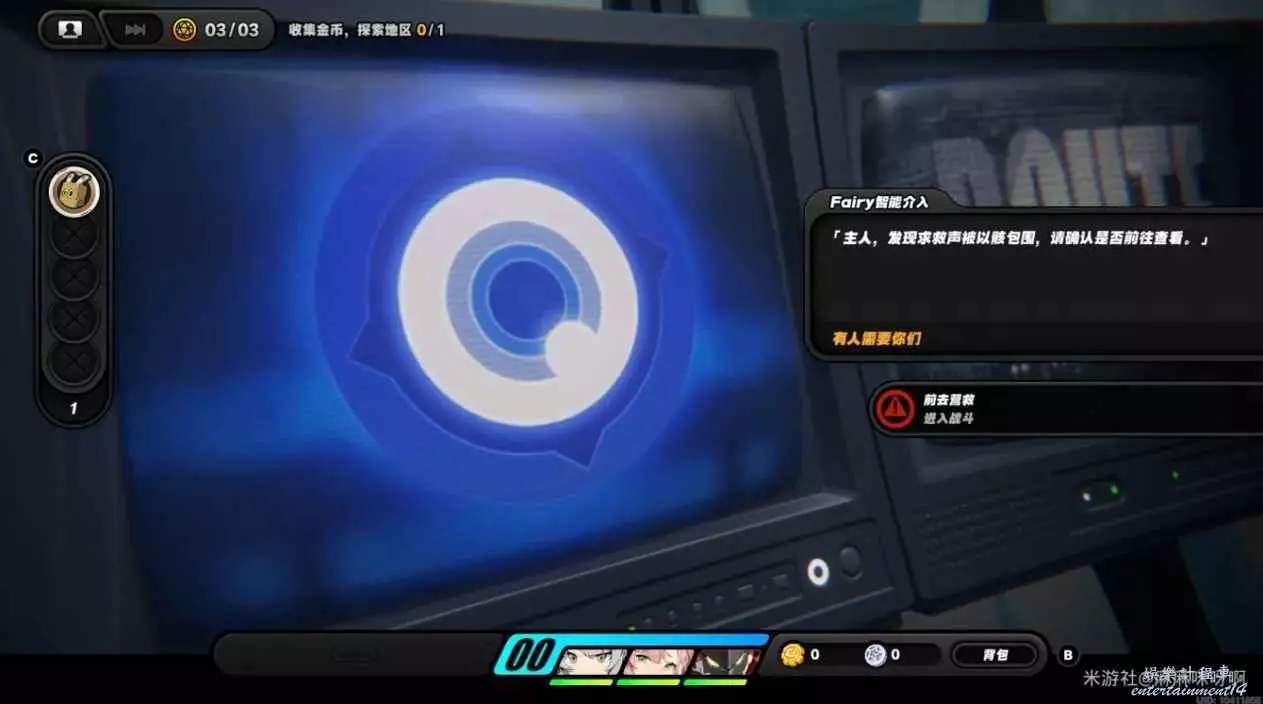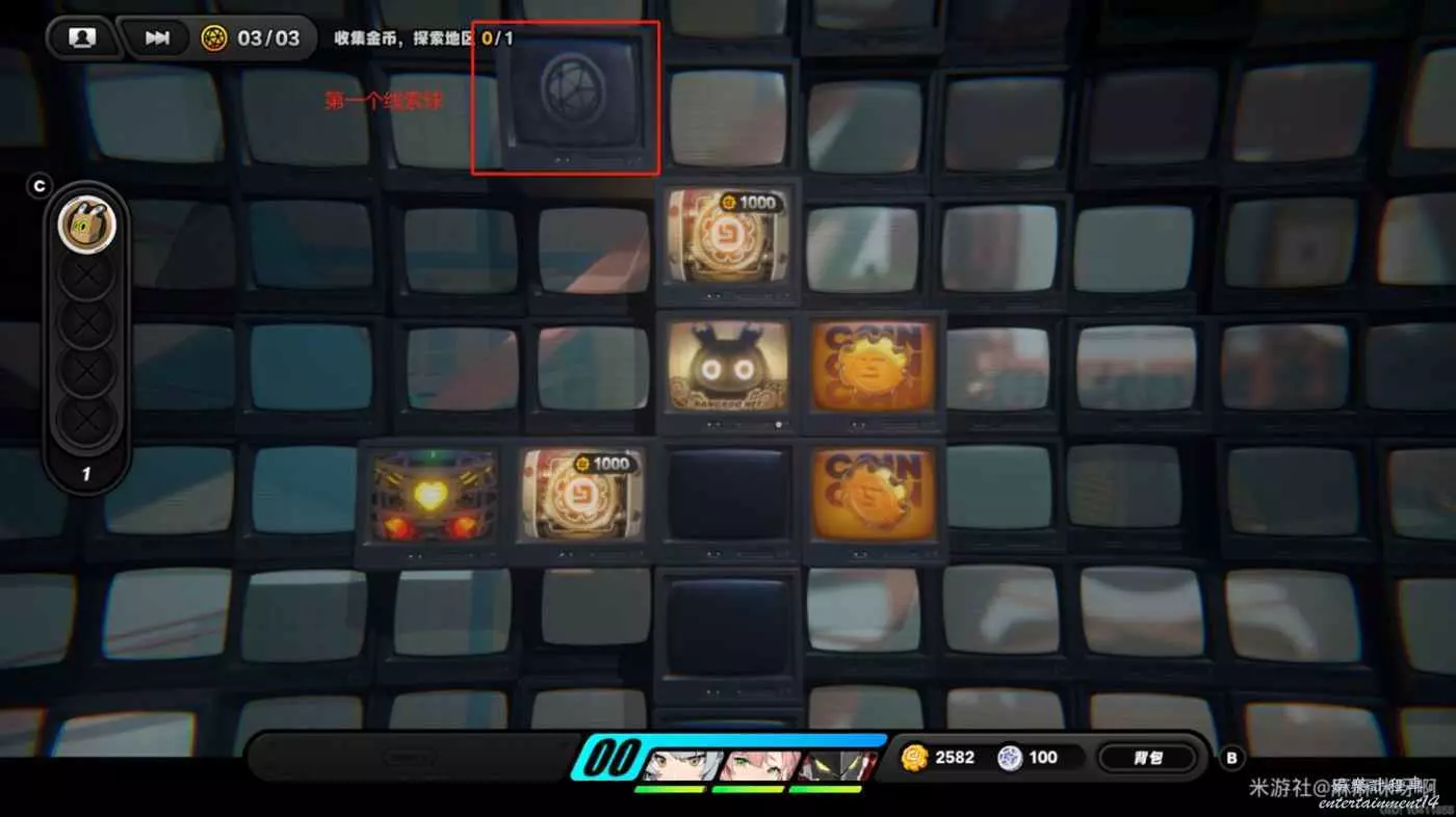 戰鬥任務跟著提示走就好了,記得擊破箱子,打完小boss後,小貓躲在後面的箱子裡面。出來後往右拾取第二個線索球。