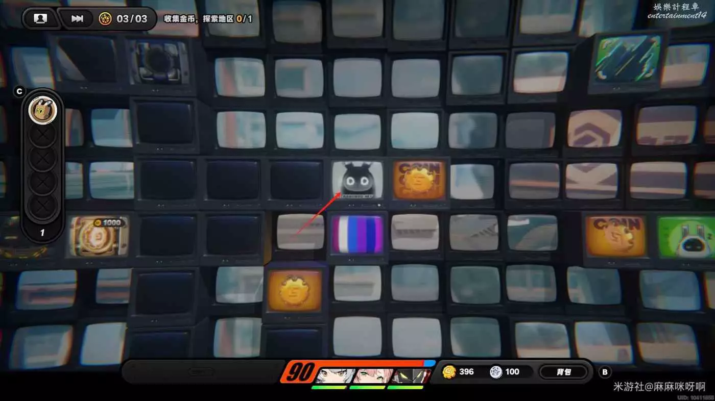 來到下面格子,打開開關,購買招財貓,金幣先不撿。