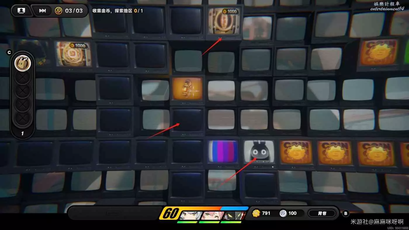 我們回到中間後,先來解鎖通往終點的藍門,全部選擇提交金幣,第一道門20000,然後一直往右,在三道門中選擇最下面打開交兩萬回滿血的門(如果不是最下面就退出看下其他兩道),再往右選擇花兩萬消除一個侵蝕(雖然本身就沒有侵蝕),然後最後一道線索球的藍門需要花10w先暫不解鎖(這裡強烈建議花10w100%幾率解鎖,如果喜歡抽獎的話也可以抽,畢竟金幣特別多,留夠70W就可以了,剩下的隨便抽,剩七十萬的時候就花10w選100%幾率)。