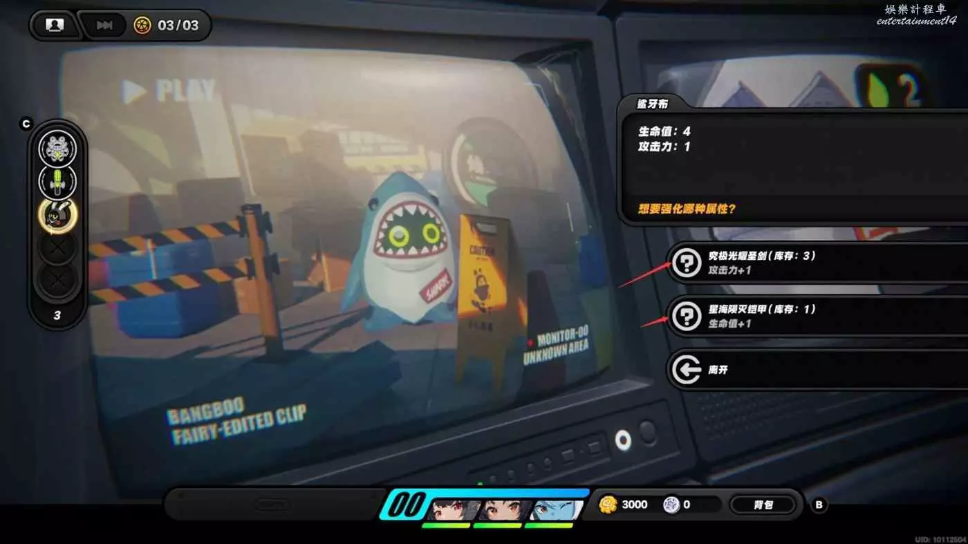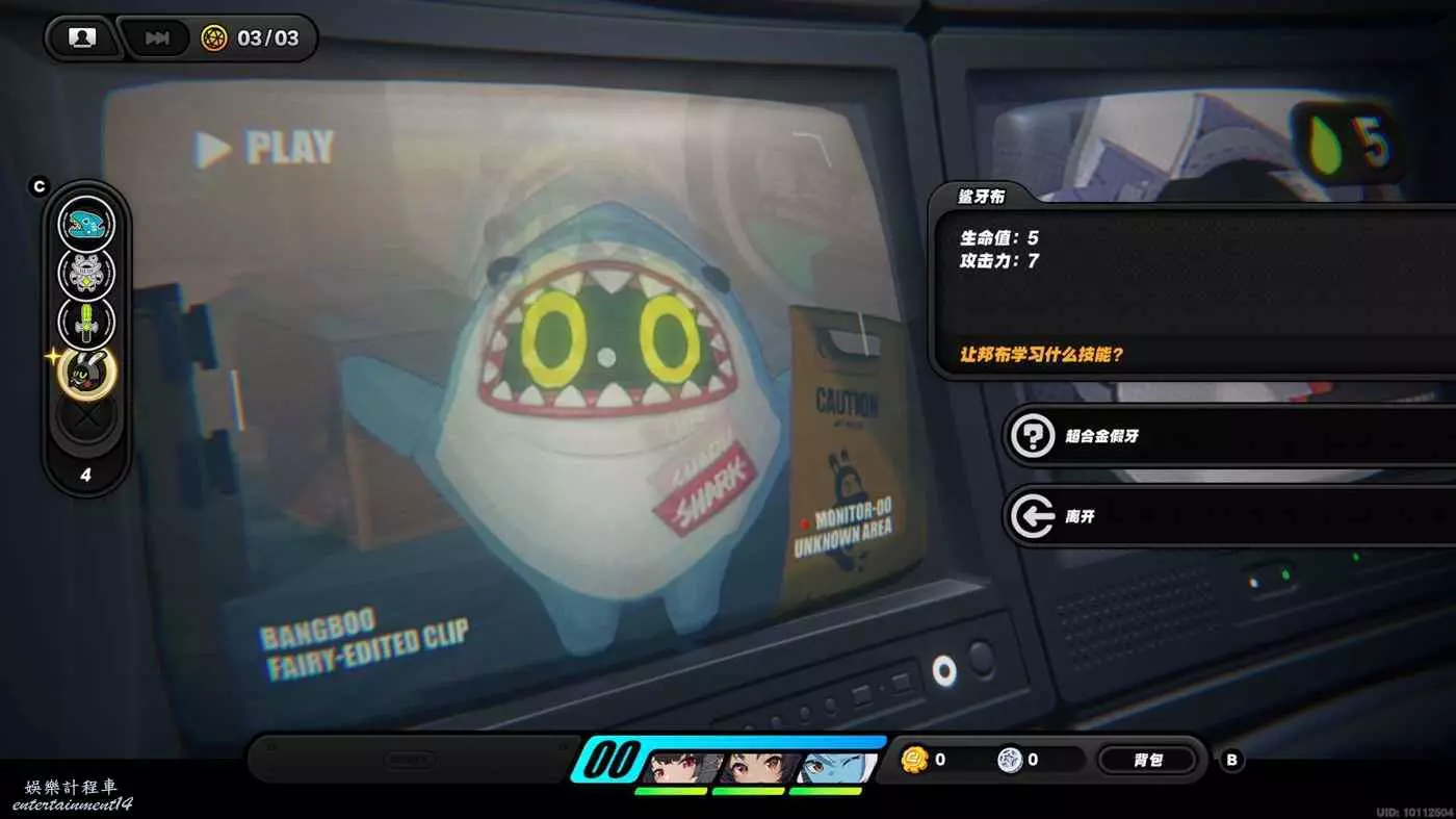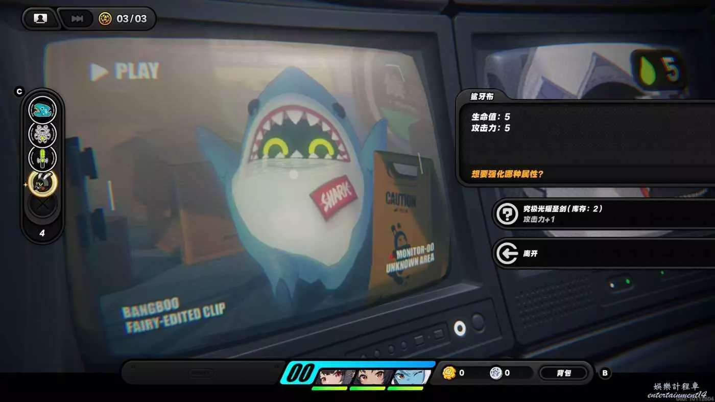 PS:建議購買3攻擊1生命都給到鯊牙布,獲勝的幾率大一點,本回合有幾率失敗!