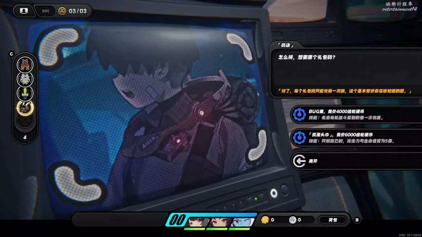 購買禮包碼:BUG盾