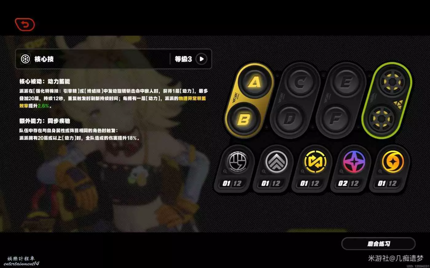 在派派用完特殊技積攢20動力後,可以給全隊加持續12秒的18%的傷害加成,在前期比前面露西加的還多。