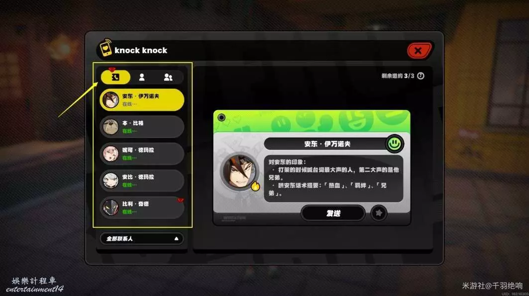 還可以按(Q)鍵位,查看資訊,在右邊全部連絡人找到線上的,發送資訊進行邀約,也可以觸發相應的任務,提升經驗等級