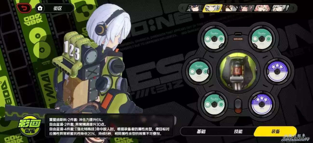 驅動盤方面,驅動盤麗娜推薦用爵士4件套加河豚電音2件套,除了可以給全隊加傷和還可以提升穿透達到理論穿透闕值。格莉絲推薦雷暴4件套加自由藍調2件套。安比推薦自由藍調4件套加震星迪斯可2件套。這樣可以避免重複效果盡可能讓全隊利益最大化。