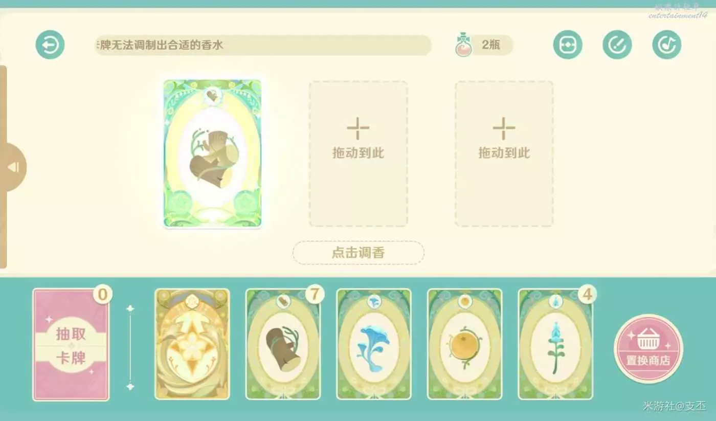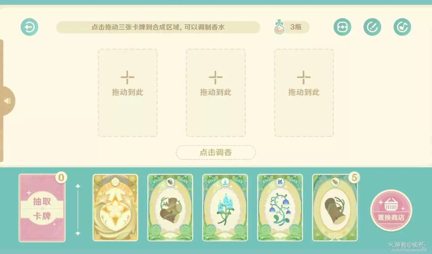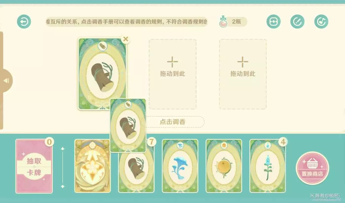 1、先放置一張低級植物卡牌,再拖相同的低級植物卡牌上來,即可合成高級植物卡牌