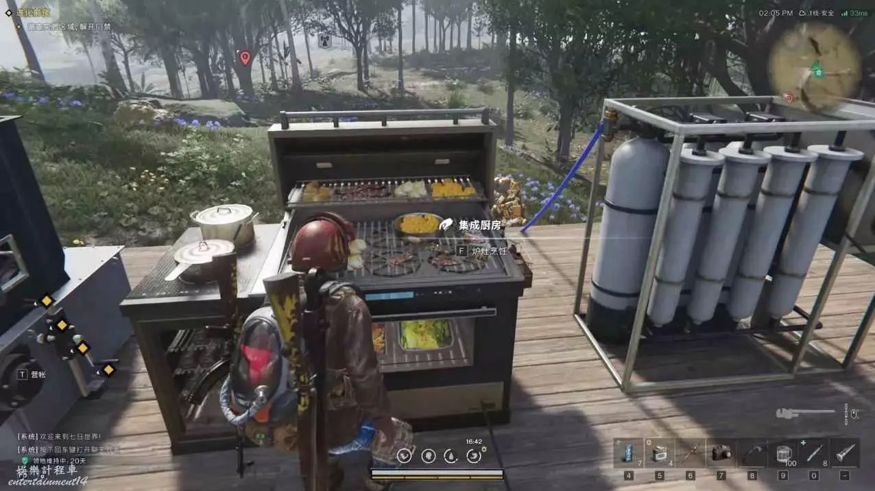 有家園設施雨水採集器,也有一個背包行囊的雨水採集器,不過大部分都用家園設置背包的有點雞肋,雨水採集器採集的為污水不可直接使用,可以用水管連接到你在家園建造的儲水罐,然後儲水罐再連接到淨水器上面就可以一套製作,注意淨水器需要電力這是後期的話了,前期可以直接在河邊打水,打來的就是污水,需要家園裡面廚房製作成可食用的純淨水或者白開,在海邊打水就是海水燒鹽