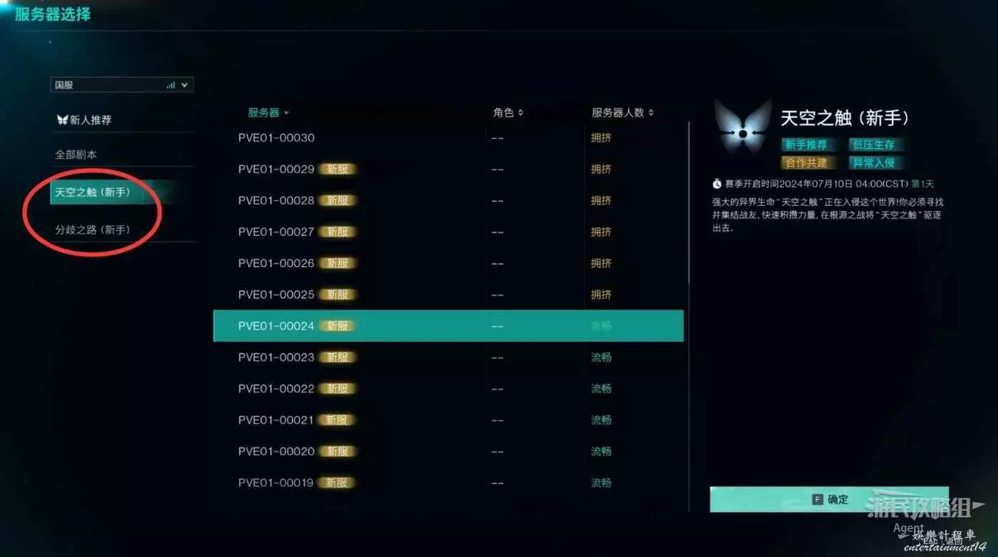 選擇伺服器時注意,“天空之觸”劇本是PVE,“分歧之路”劇本是PVP。本文為天空之觸PVE星辰之旅任務攻略。