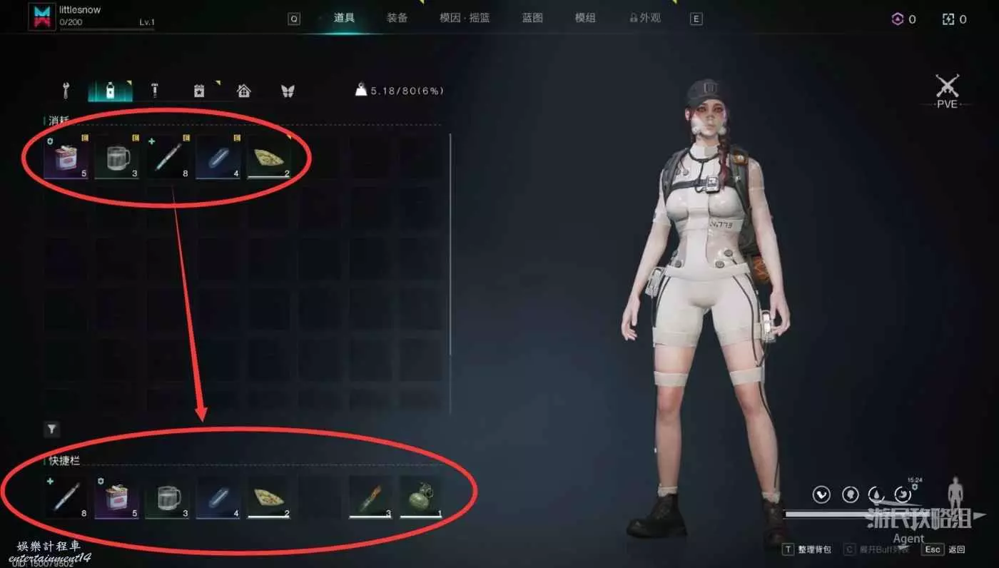 手雷、燃燒瓶也可以放置到快速欄,隨時按數位快速鍵使用。