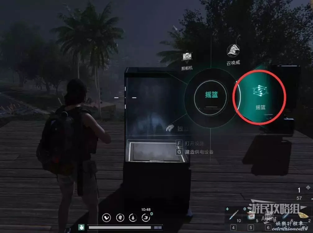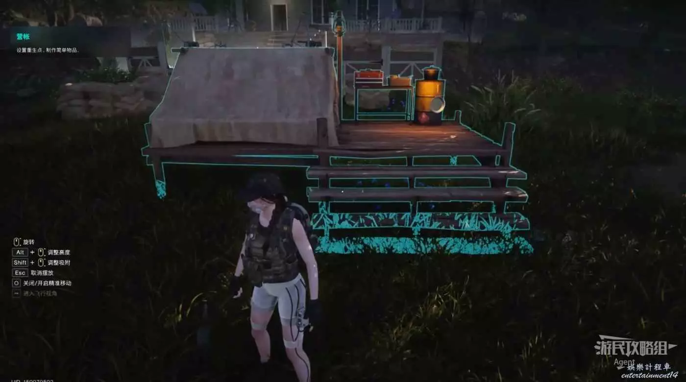 按T在野外建造臨時營帳。可以製作簡單物品,也可以作為重生點。