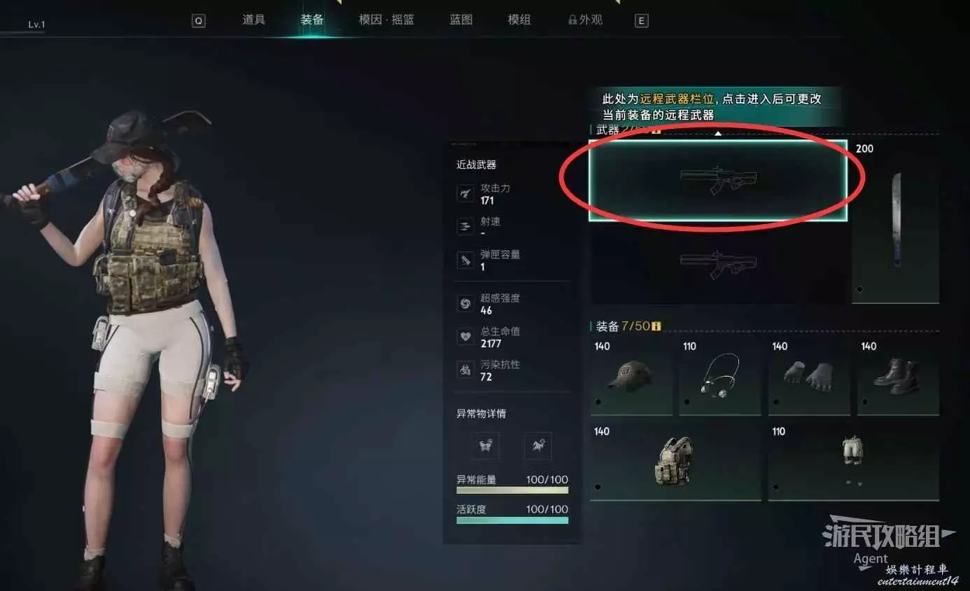 有了簡易的武器後,打開裝備欄,把弩裝備上。