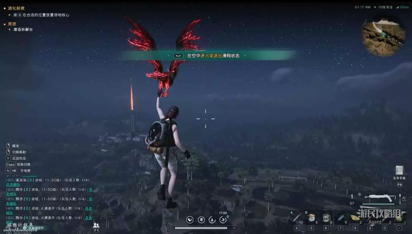 在空中按下“空白鍵”進入或退出滑翔狀態。