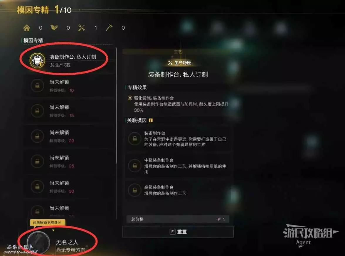 每提升5級,將解鎖1個模因專精節點,選擇其中一種強化效果來提升生產製造的能力或改變產物效果。