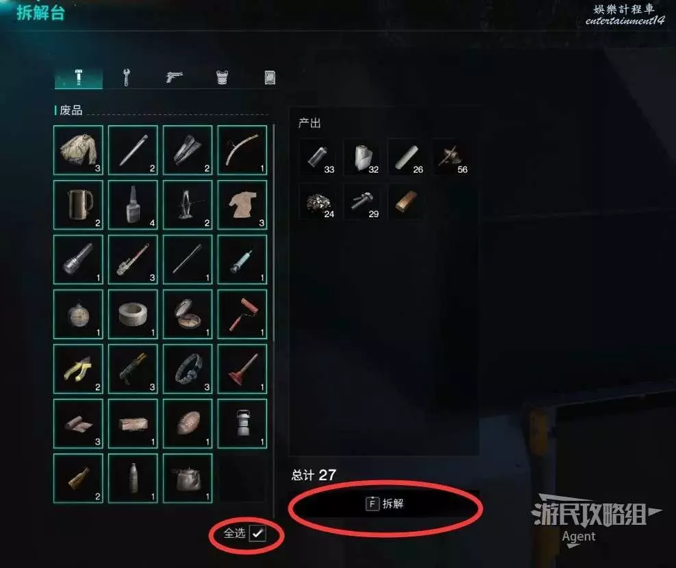 廢棄不用的槍械、裝備、模組和子彈等也可以通過拆解台拆解來回收素材。