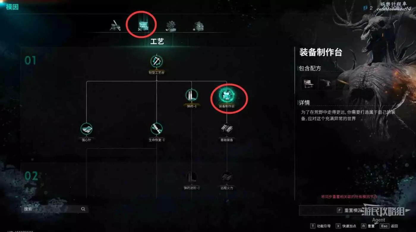 和瑪麗對話後,到模因的工藝介面,學習輕型工藝台、裝備製作台。