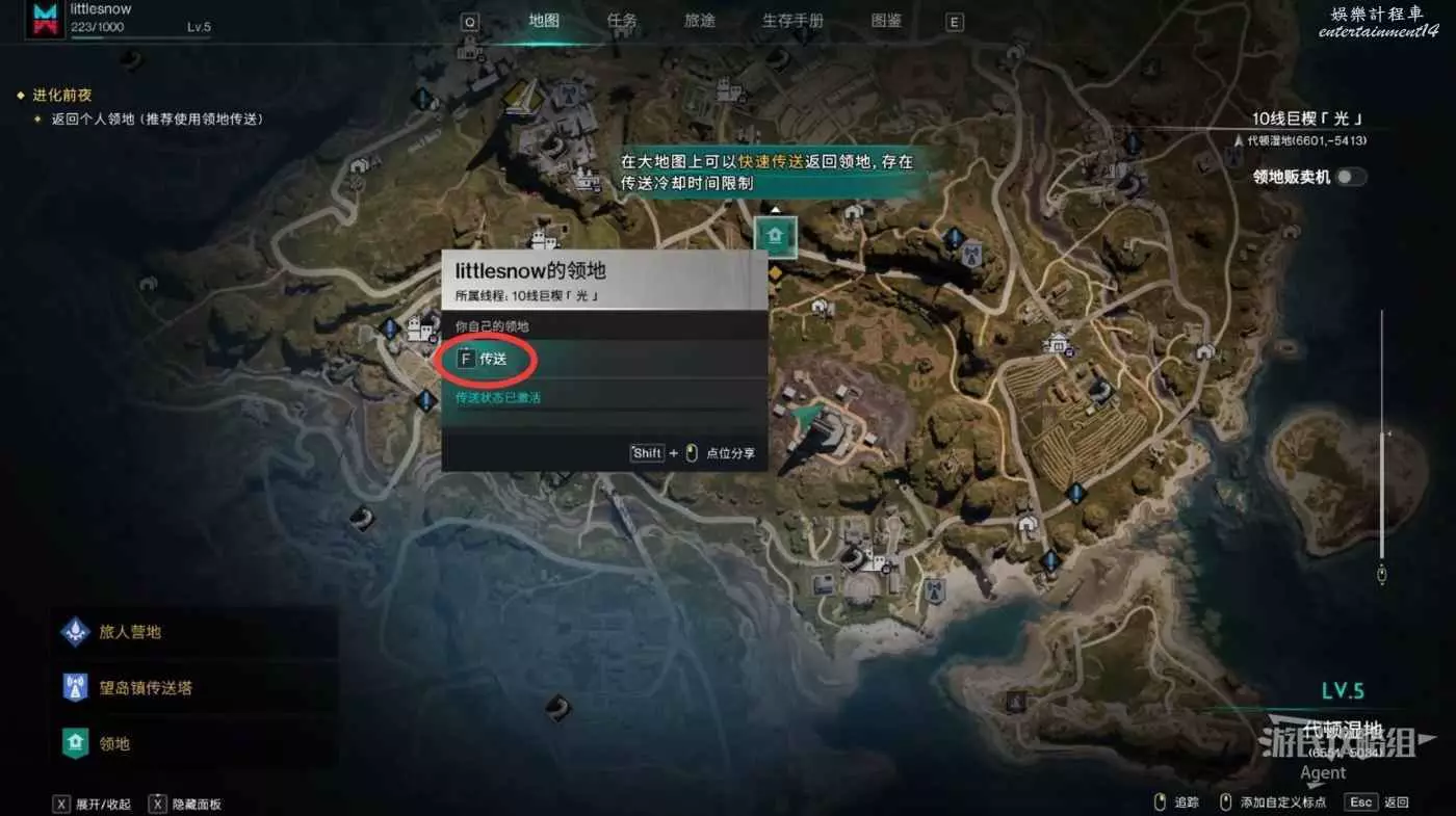 落地後,尋找自己想基地的地方,按B建造領地核心。