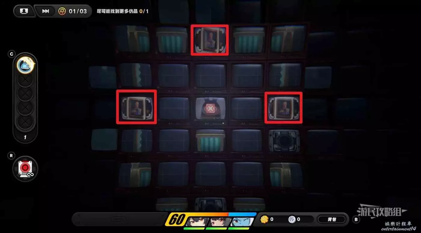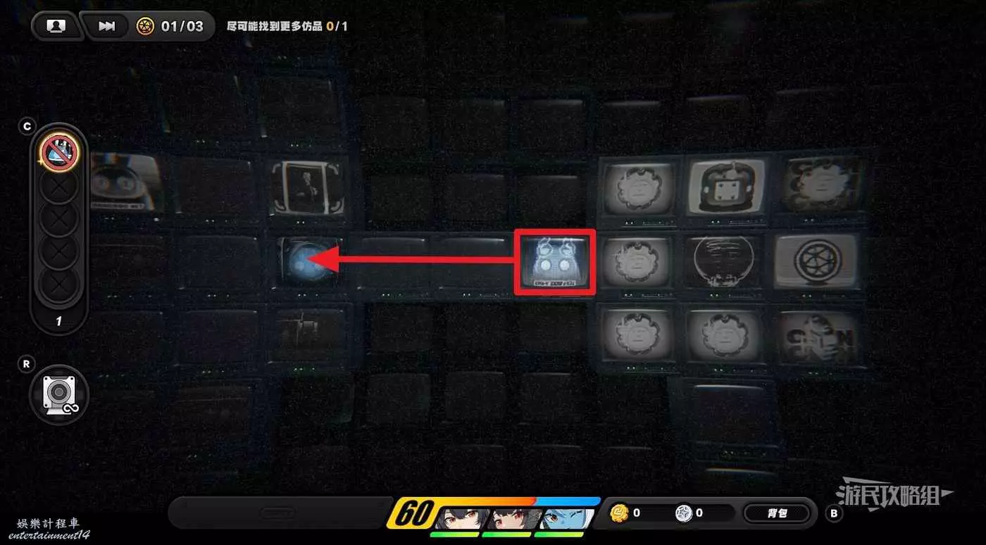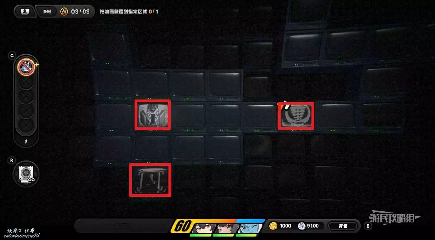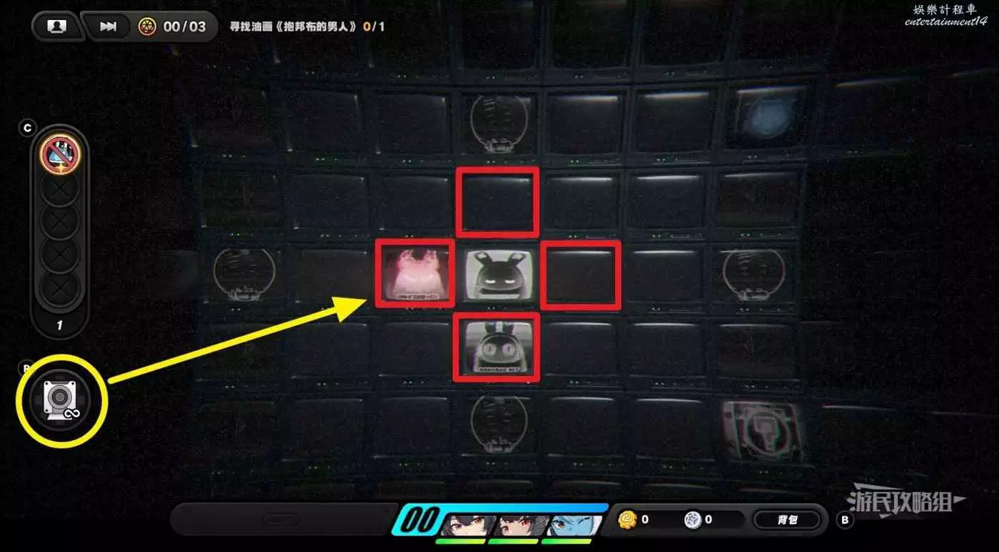 進入藝術品展覽區後,點擊介面左邊的圖示進入紅外攝像頭視角,用攝像頭移動到四周的怪物方格上將怪物驅散。