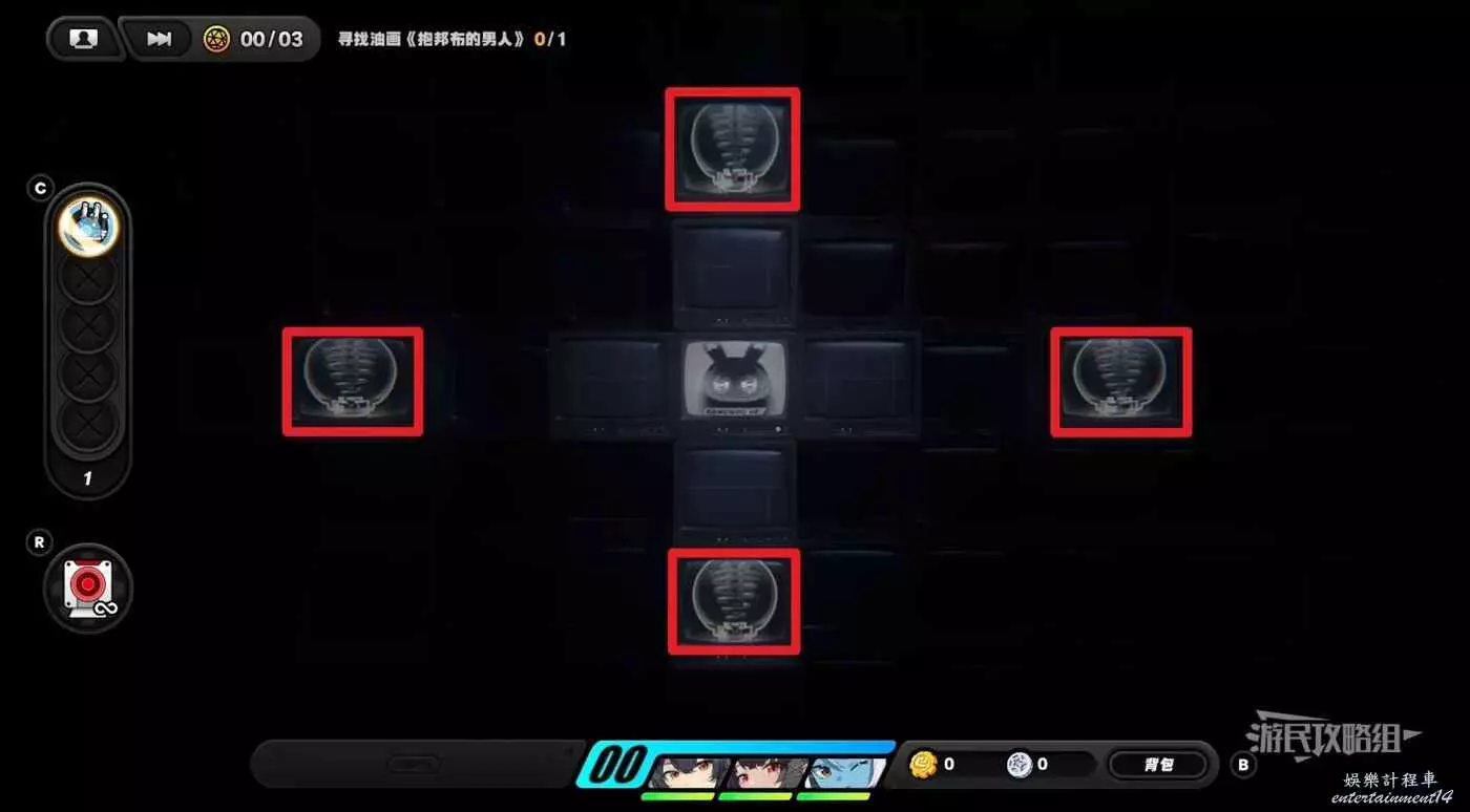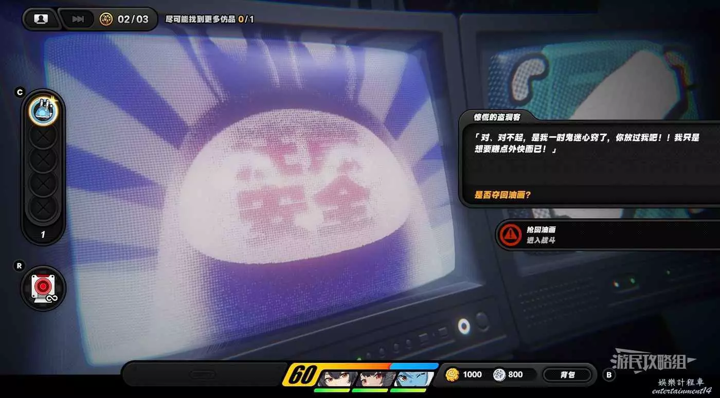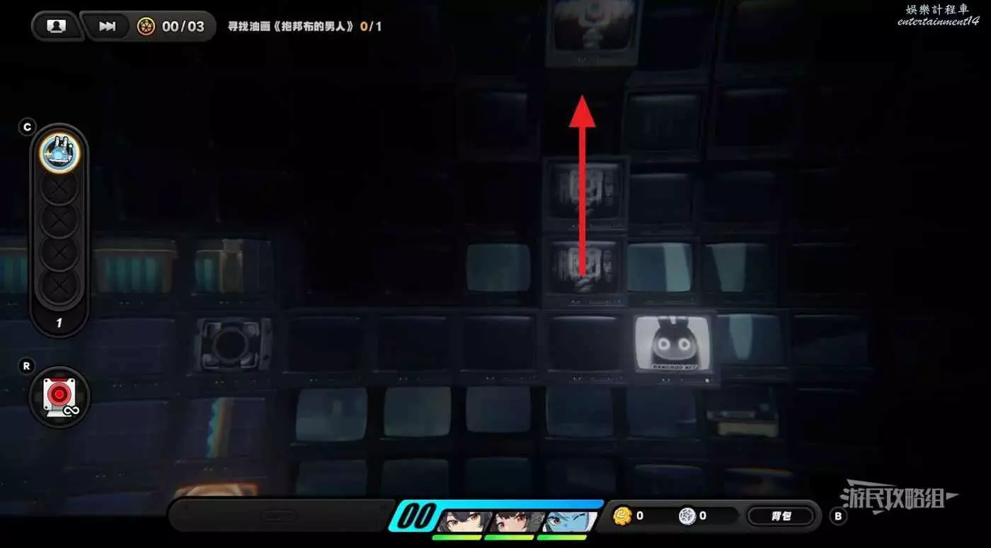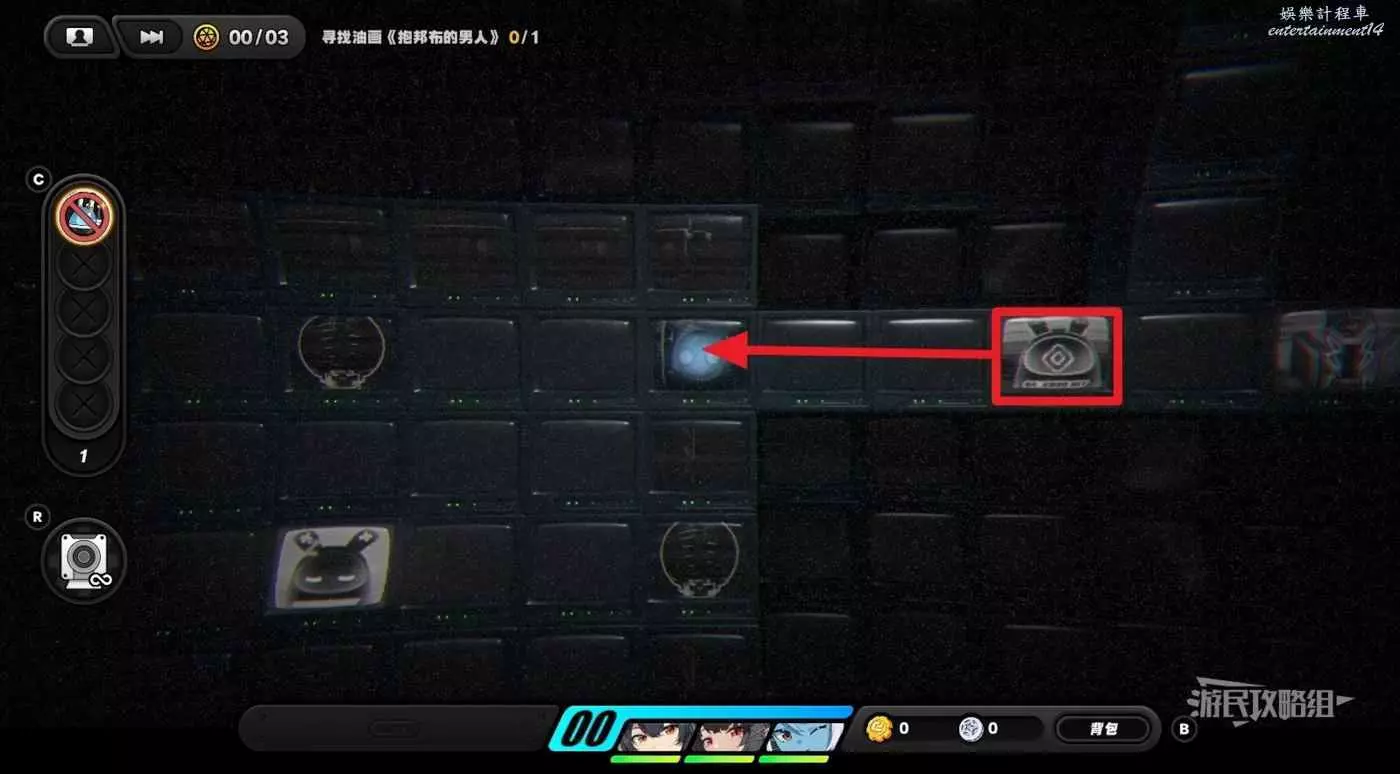 這裡我們繼續介紹一下後面兩幅油畫的收集。首先開啟攝像頭視角,可以看到下方有最後一個觀測資料,哪怕不要後面兩幅油畫,也要先拿到觀測資料後再走。然後往右有一幅油畫,需要戰鬥,附近沒有多餘的格子和機關,直接過去完成戰鬥並拾取油畫即可。