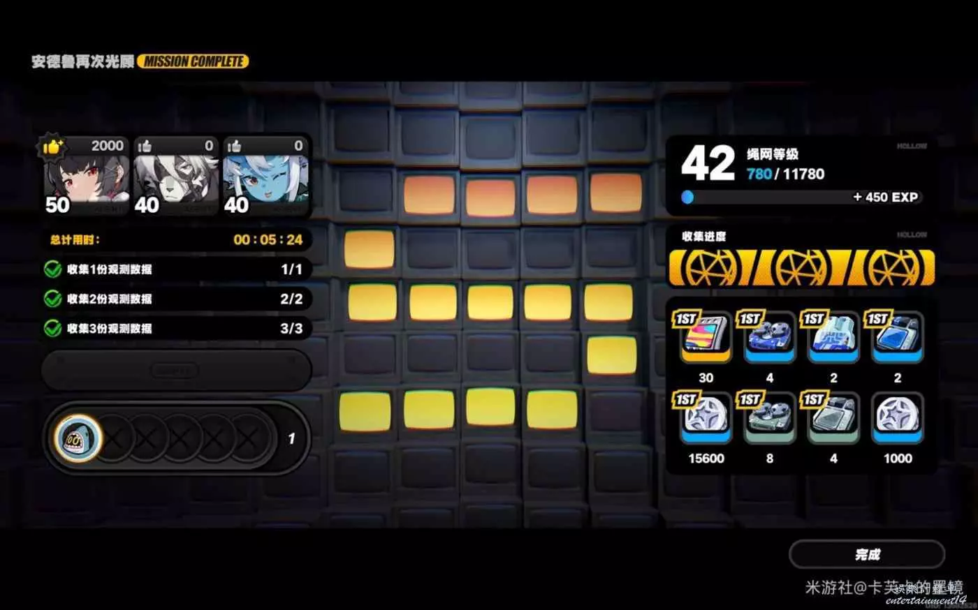 三輪測試結束後委託完成,還是非常簡單的。每答對一輪回獲得一個齒輪硬幣,每枚硬幣可以獲取一些資源,沒有答對的話也可以拿到三個觀測資料。