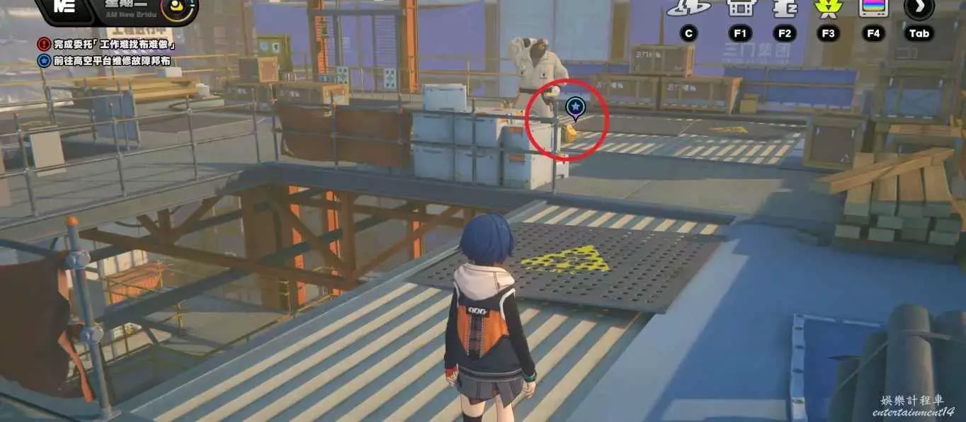 4,再乘坐旁邊的升降梯上去,修理平台上的邦布