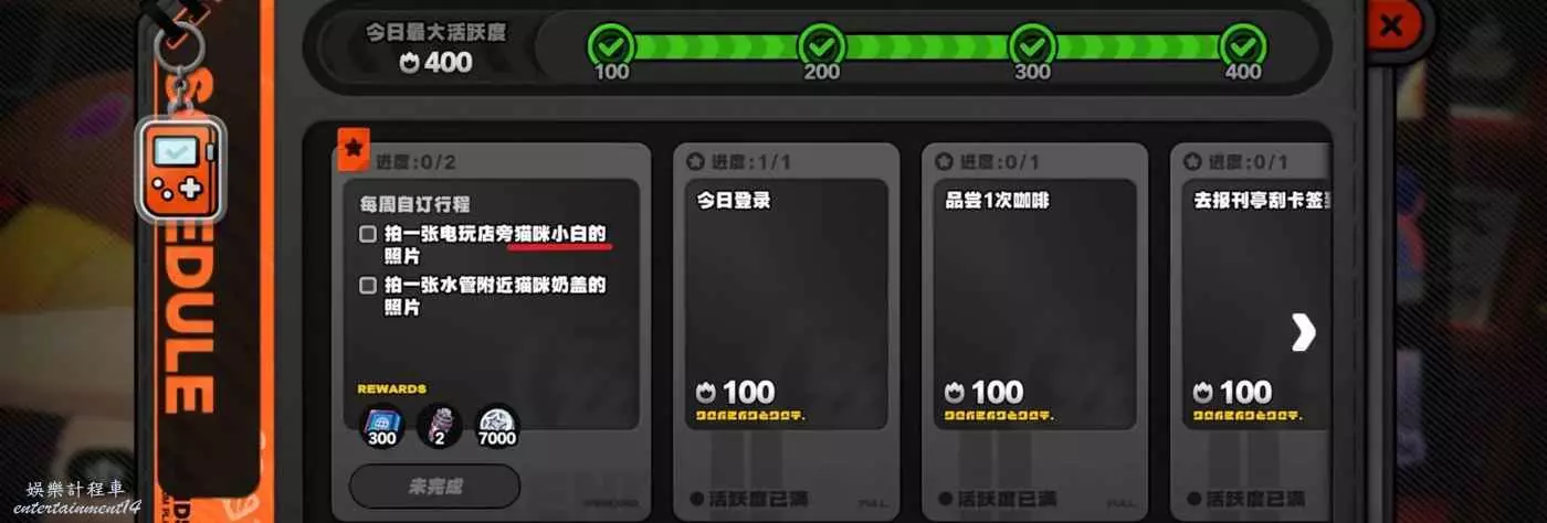 1,先說一下,這個任務會被每週自訂行程裡,給小貓拍照的委託卡住