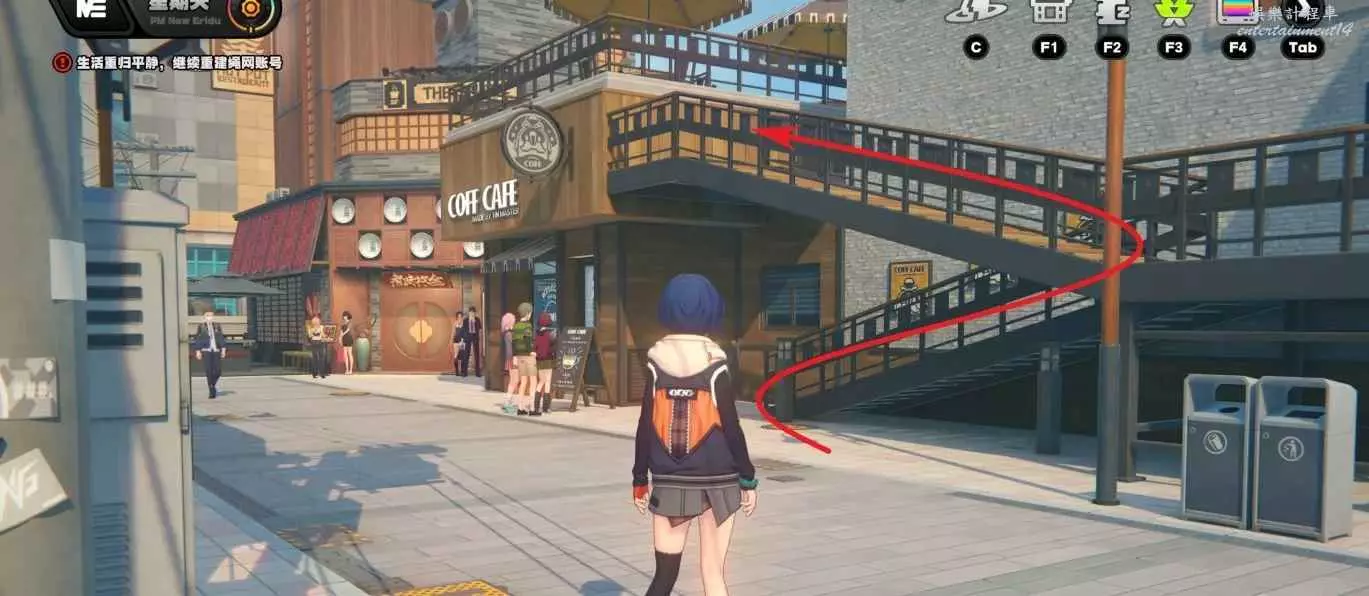 傳送到咖啡店,從右邊的樓梯上到2樓