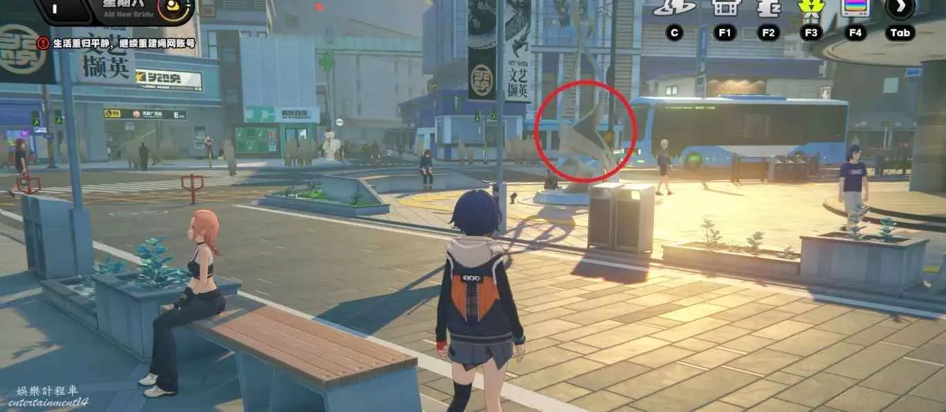 2,之後傳送到步行區域,往左前方走,拍攝這裡的銀色雕像