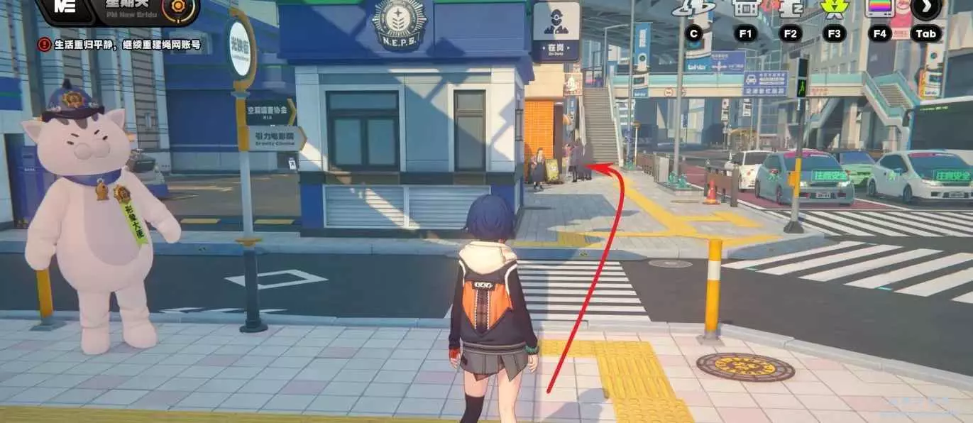 傳送到喵吉長官這裡,向右手邊走,來到天橋前(不要上去)