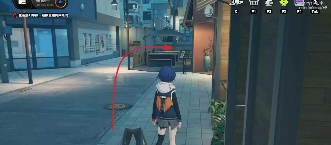 傳送到咖啡店,順著左手邊的道路走到盡頭