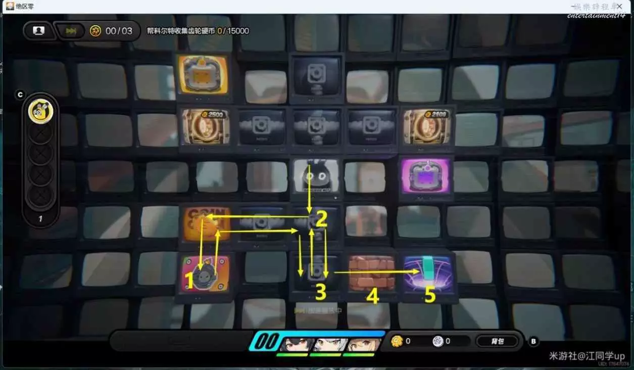 3.接下來是隨機的,所以大家自行完成即可,隨便打即可,怪會不斷追擊我們,我們用炸彈炸掉怪即可,同時將4個角落的獎勵全部拿完,同時還需要收集1萬5千齒輪硬幣,這個很好收集的