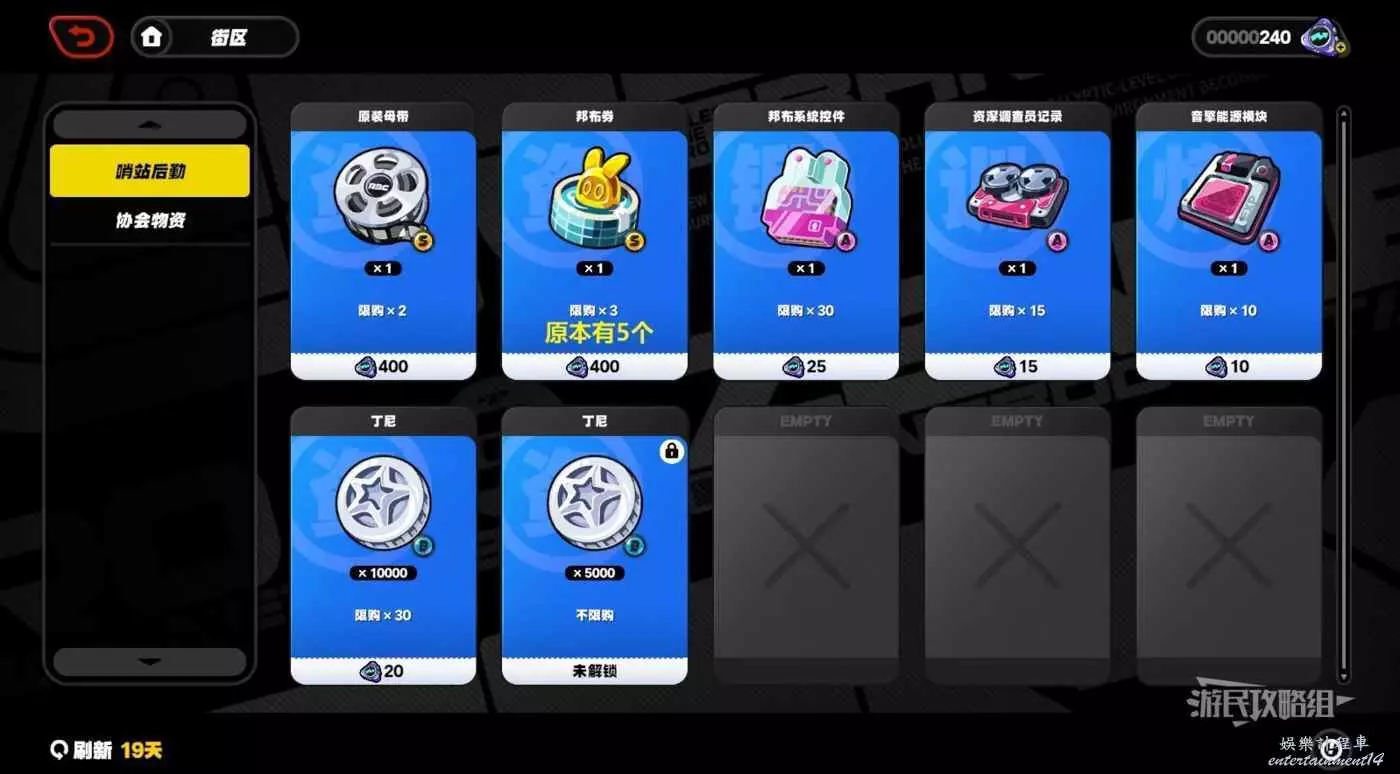 絕區零 (Zenless Zone Zero) 零號業績、調查業績作用及用法 12 7 月 2024-07-12 廣告 作者:瑞破受氣包 來源:遊民星空 按M打開地圖傳送到【斯科特哨站-哨站內部】。 轉身往帳篷外面看,可以看到牆邊站著一個NPC。 與卡斯帕對話即可使用零號業績和調查業績來兌換相應獎勵,包括原裝母帶、邦布券等獎勵。 下方是可以兌換的獎勵,其中【哨站後勤】一頁的獎勵是已經換了2張邦布券之後的截圖,原本每期可以兌換5張邦布券。【協會物資】是沒有換過的。