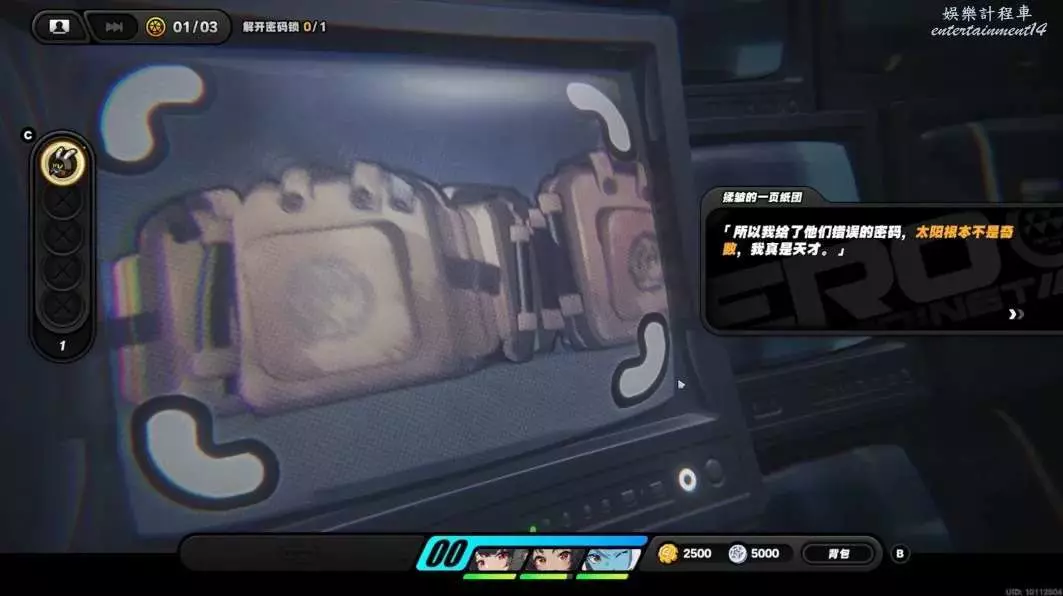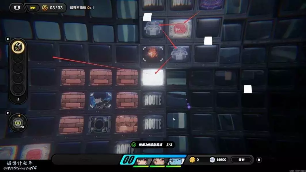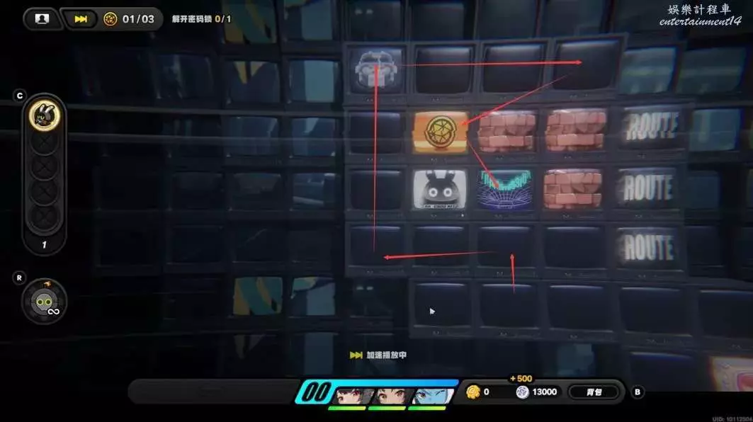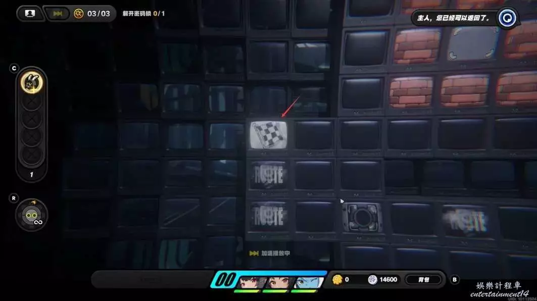 跟隨紫色路線拾取獎勵後來到密碼鎖處。