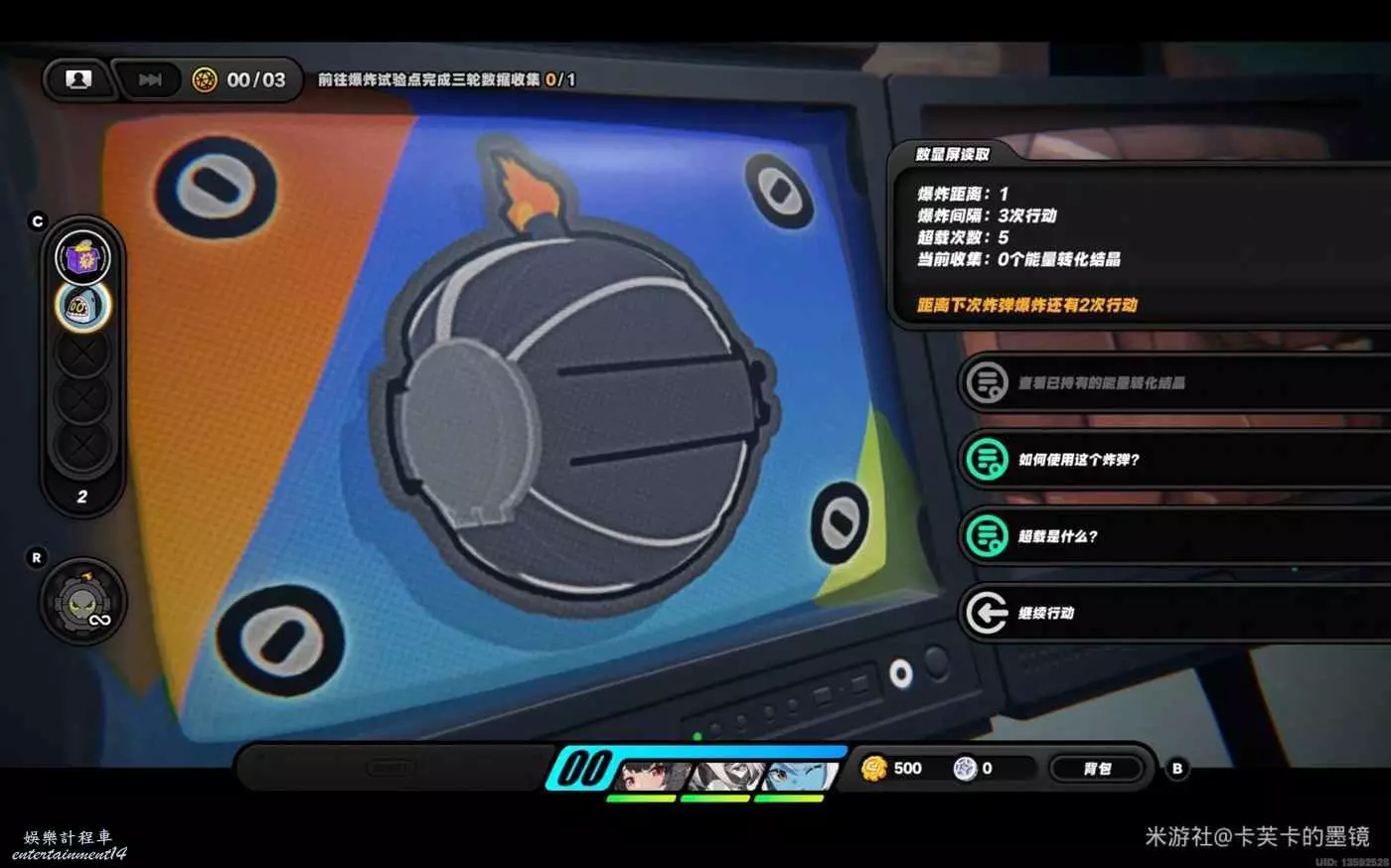 直接拿到炸彈,我們可以發現初始炸彈是根據我們自身的移動來結算的,每行動三次就會爆炸一次