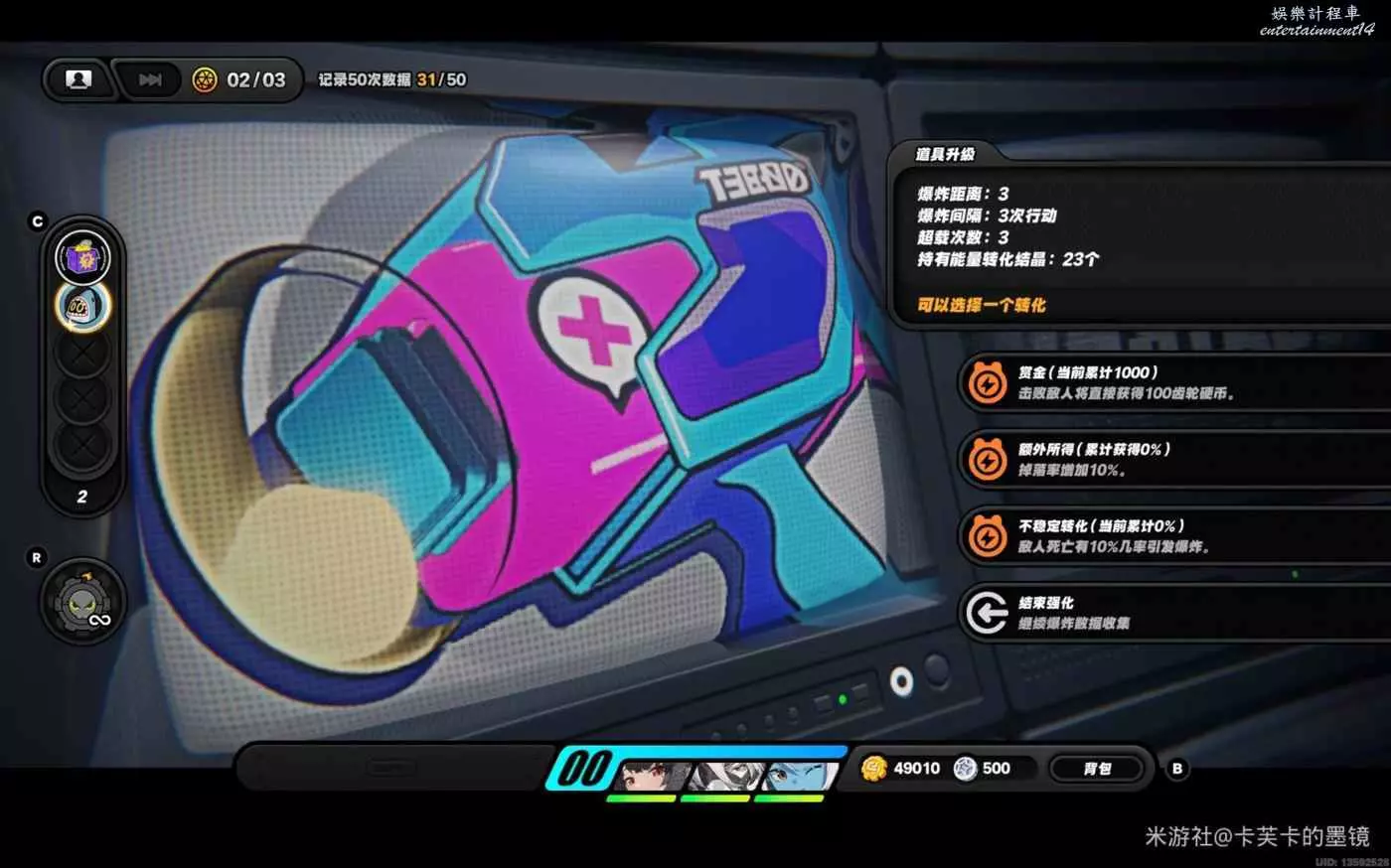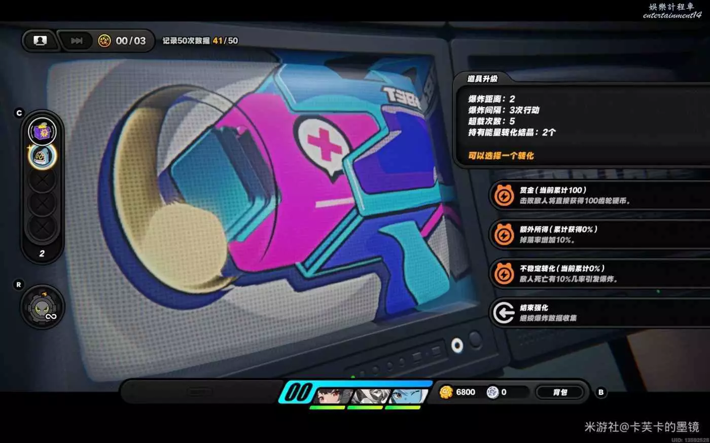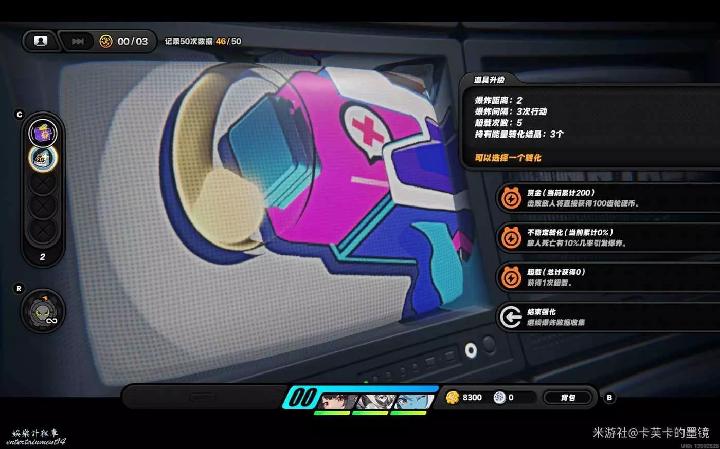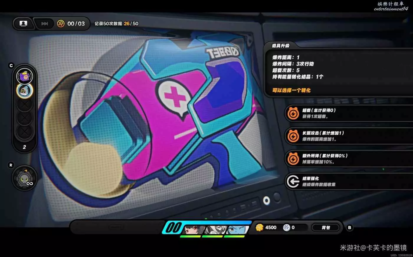 依然選擇【賞金】左右右上左,資料達標,此時不會爆炸
