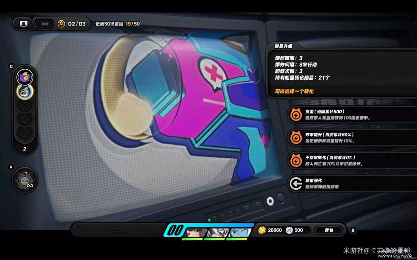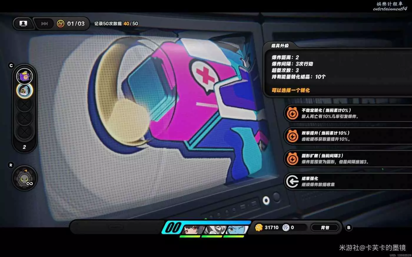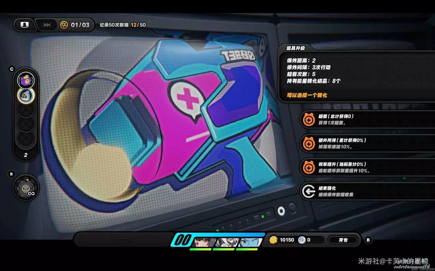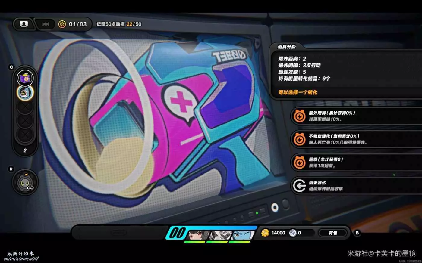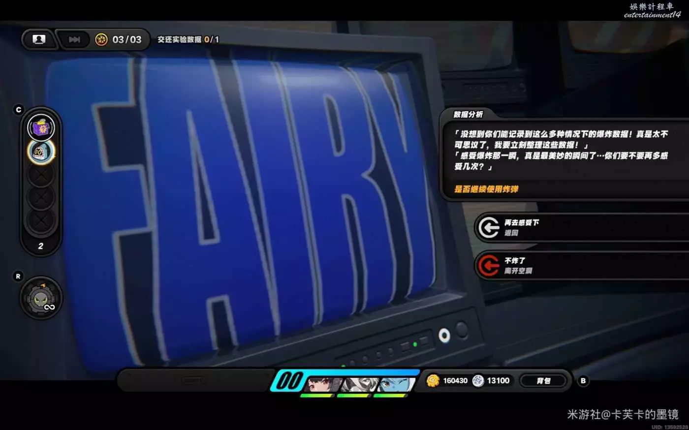 依然選擇【賞金】左右右上左,資料達標,此時不會爆炸