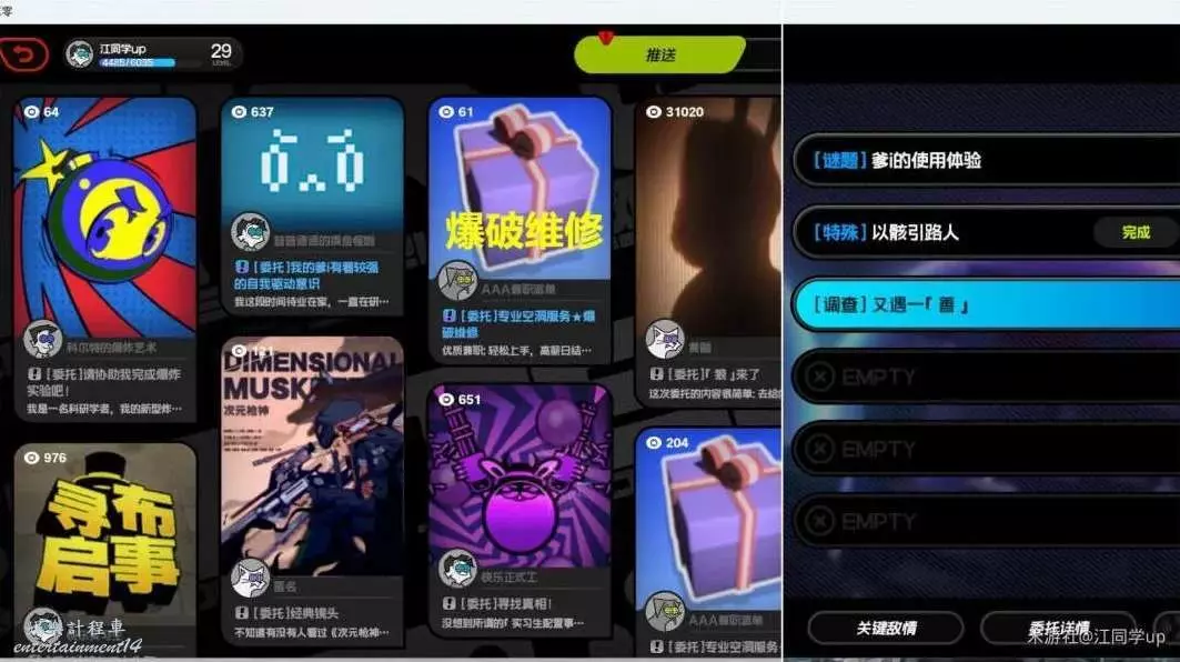(1)首先該任務需要最少26級,並且主線做到第2章【幕間】後,即可從【繩網】的【推送】消息【專業空洞服務,爆炸維修】中接到第2章【探索委託-又遇一善】