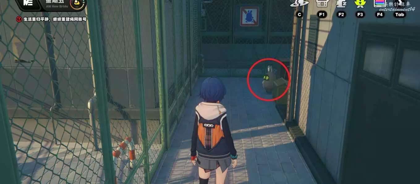 傳送到改裝店,回頭看,順著鐵絲網進去