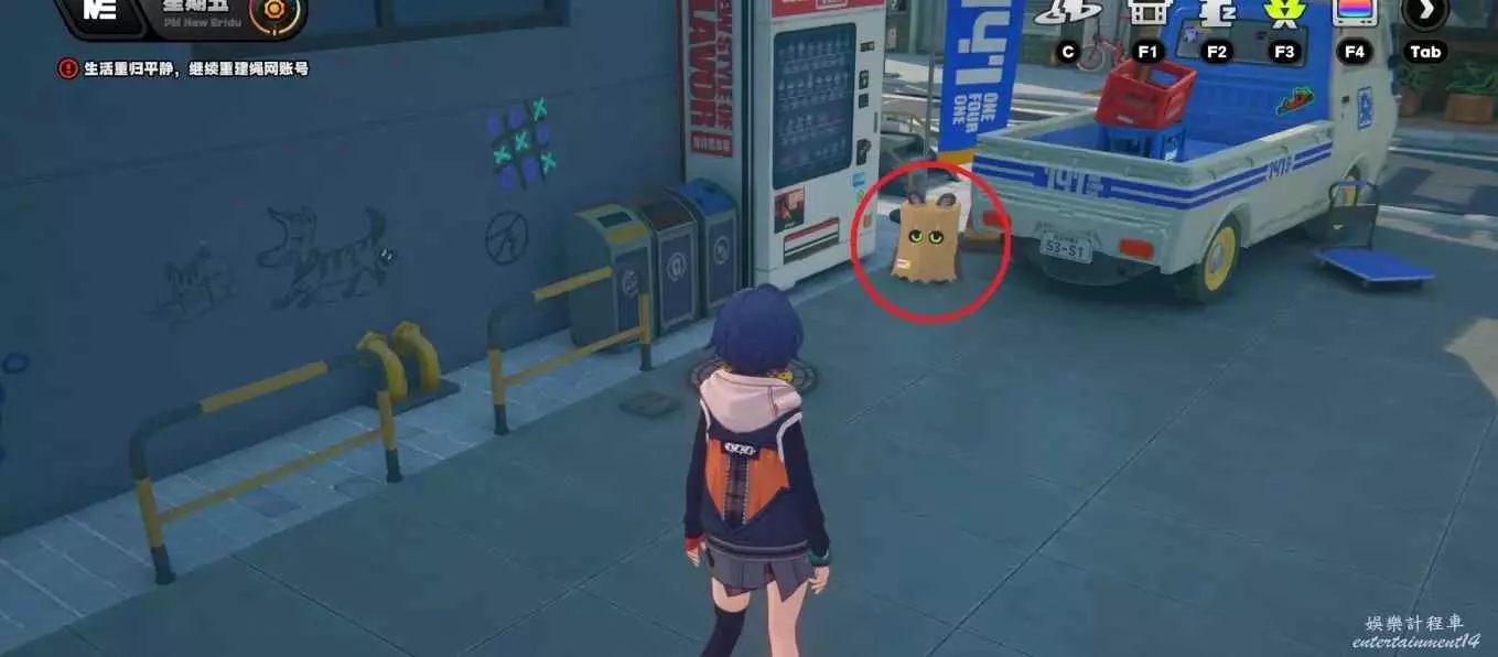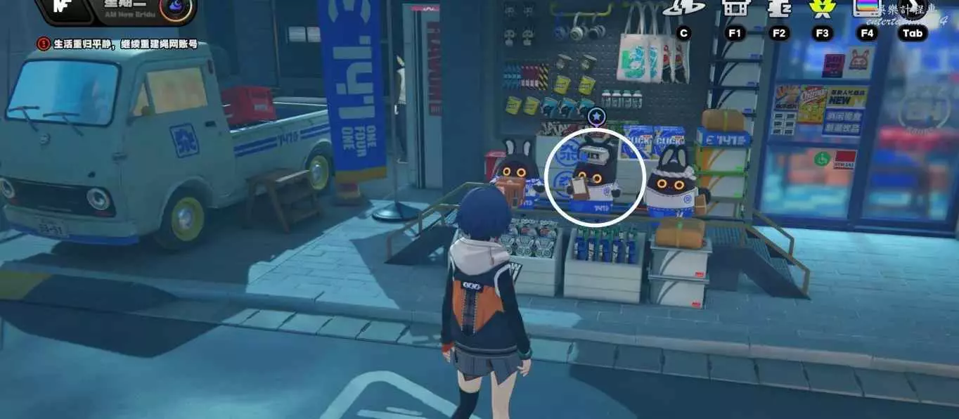 傳送到雜貨店,來到左手邊的空地,修復卡車後的邦布