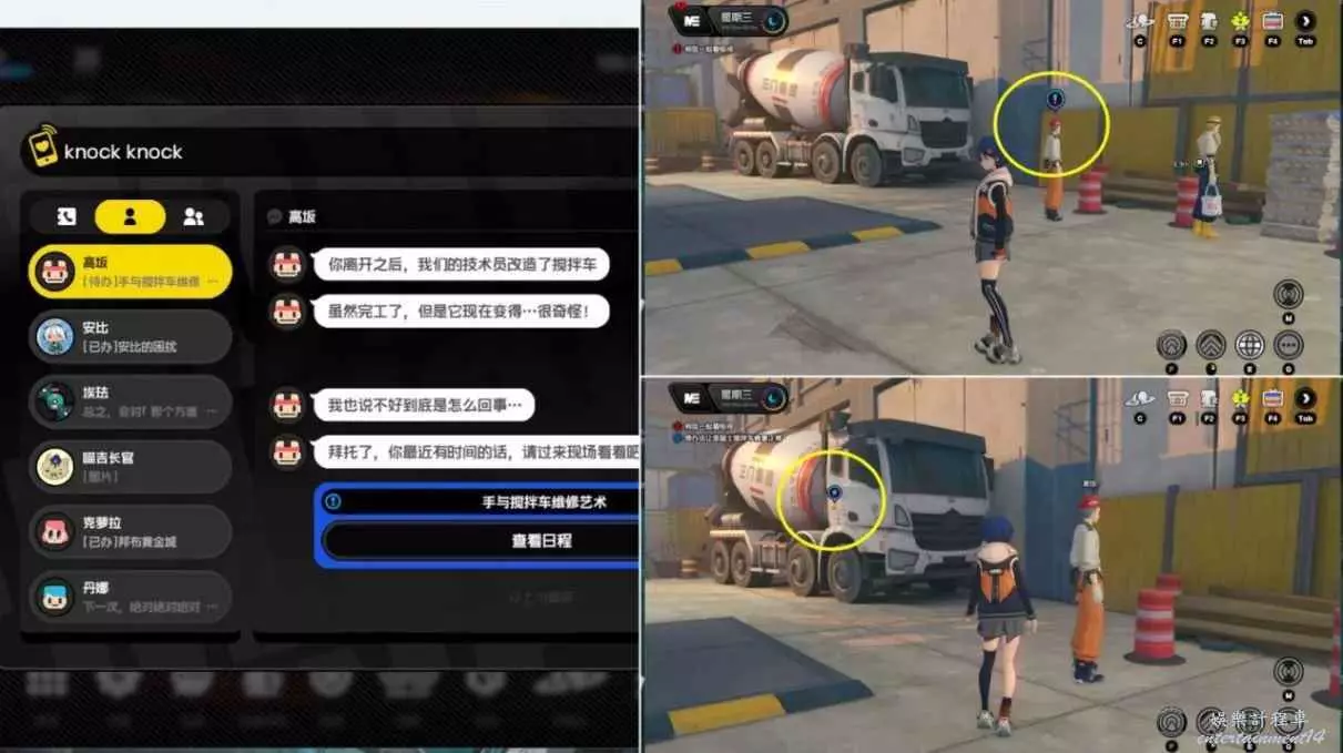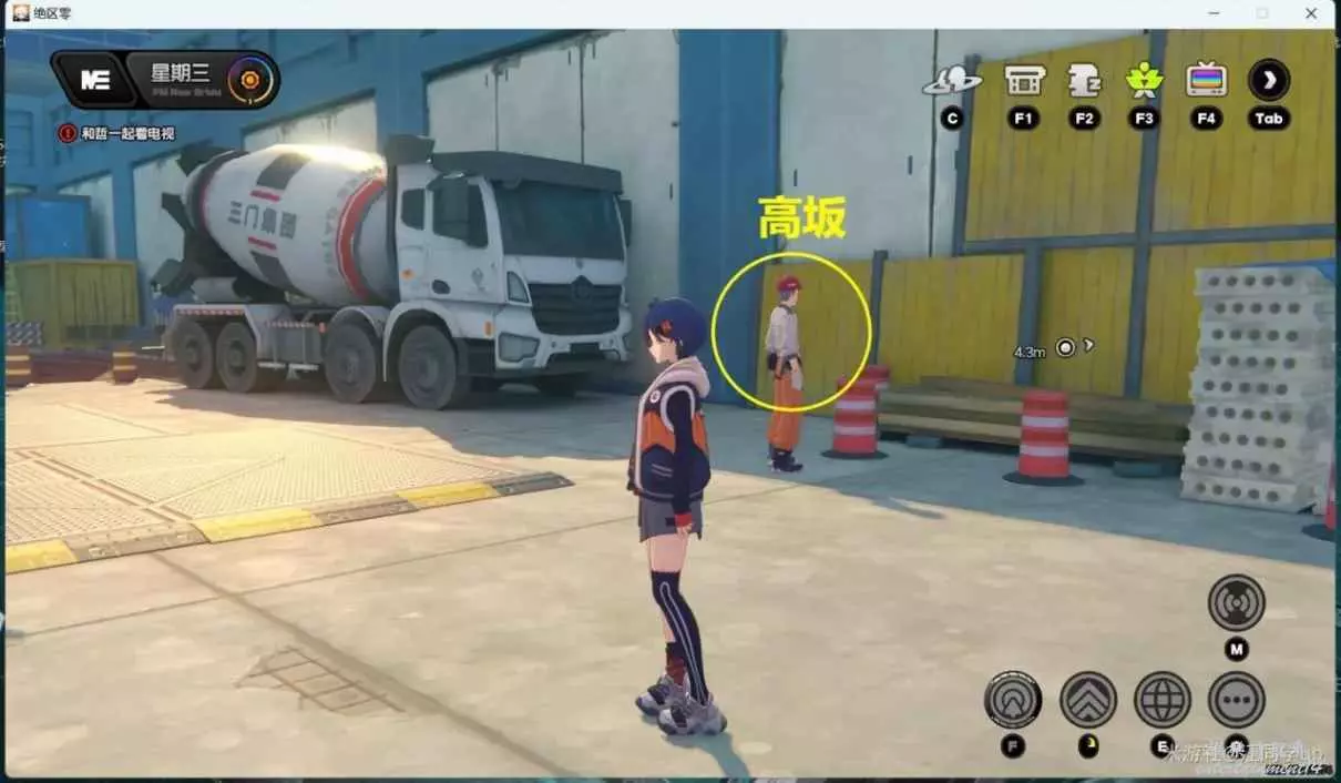 (1)完成【樂於助人獎章1】後的下個時間段,就會收到【高阪】的短信,即可接到該任務,接著去和【高阪】左邊的【攪拌車】對話
