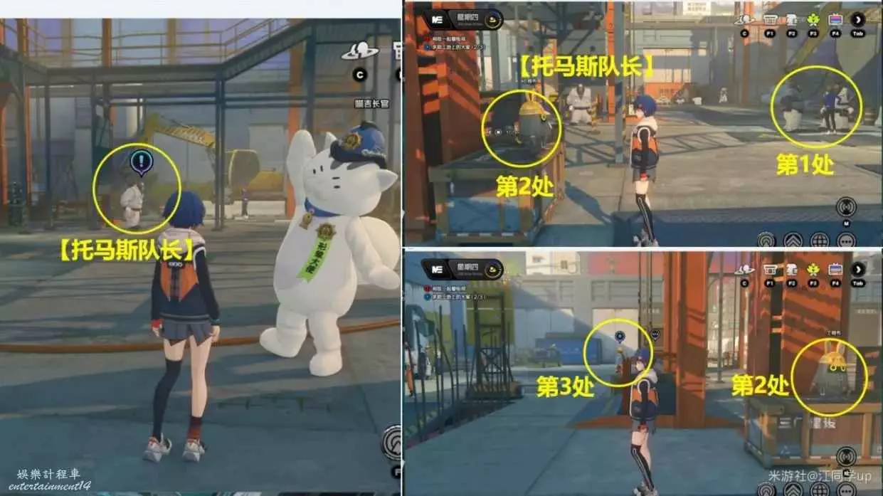 (1)傳送到【喵吉長官】後,找【湯瑪斯隊長】對話接任務,接著去下圖3處位置對話