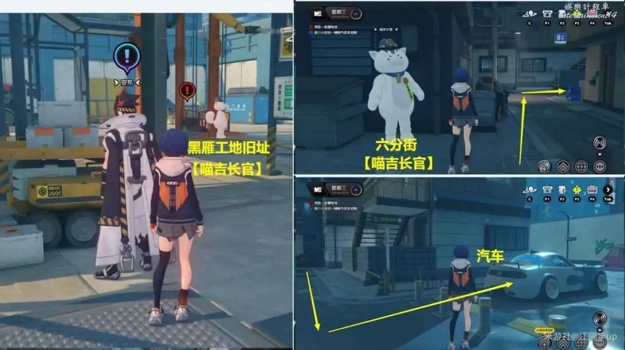 (1)傳送到【喵吉長官】後,找【安東】對話接任務,然後傳送到【六分街-喵吉長官】處後,從前面進去後右邊過去,右邊裡面的左邊有個【汽車】,接著給【汽車】拍張照片,然後再傳送回【黑雁工地舊址-喵吉長官】處後,就會收到【安東】的短信,閱讀完短信後,該任務結束