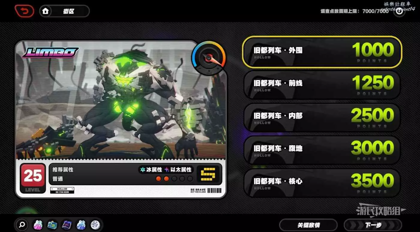 選擇任意空洞關卡,如果比利的練度不是很高的話推薦選擇【舊都列車·週邊】,同等級其他關卡限制條件會比較多,過起來很麻煩,這一關的怪比較簡單,也沒有額外的機制需要考慮。